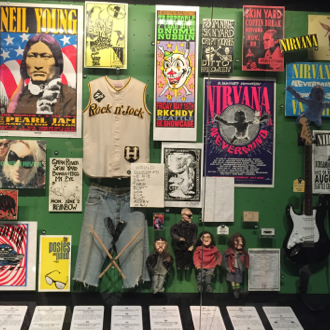 As with the birth of most bands themselves, your journey begins in the basement. And as you look around at the collection it’s only fitting as you wonder who’s basement many of the artifacts were pulled from. Genres are generally broken into separated areas, and in some cases further broken up by geography. You will also quickly realize that Rock and Roll is really a catch all for “popular” music, and all of the music that has influenced it. So your journey begins with displays of country, blues, and even gospel as you’re led into the early days of rock, including of course the King, Elvis himself. In a nice historic touch there are listening stations where you can here recorded statements from more contemporary band members giving homage to their early influencers.